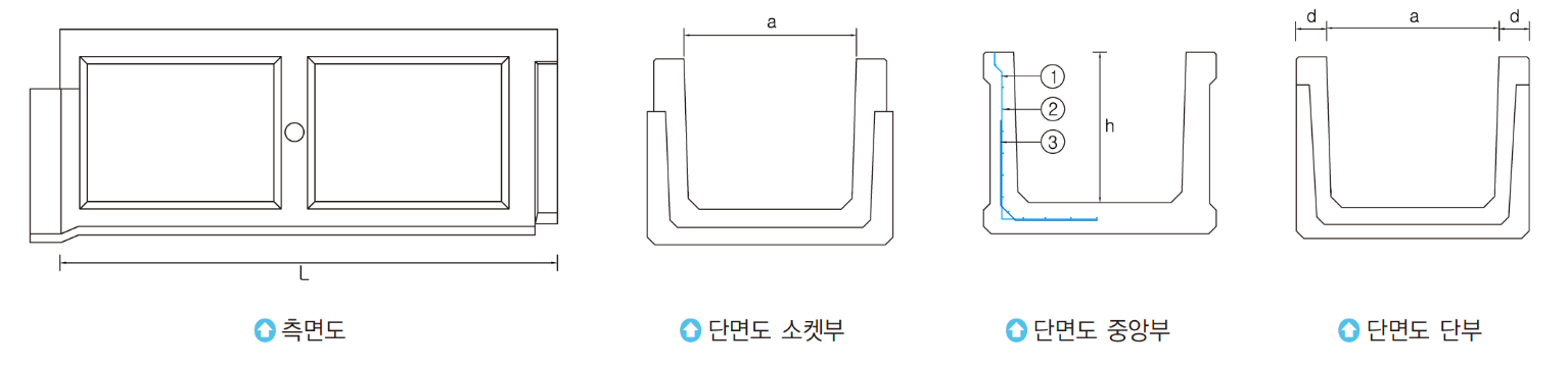 | 400C | 400 ± 4 | 400 ± 2 | 75 이상 | 2000 ± 5 | 5.0x20 이상 | 5.0x12 이상 | 보강근 Ø13mmx10 (단, 구조에 영향이 없을 시 삭제할 수 있다.) |